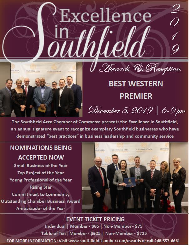 Excellence in Southfield is an awards reception that recognizes and awards Southfield Area businesses who have demonstrated "best practices" in business leadership and community service.
